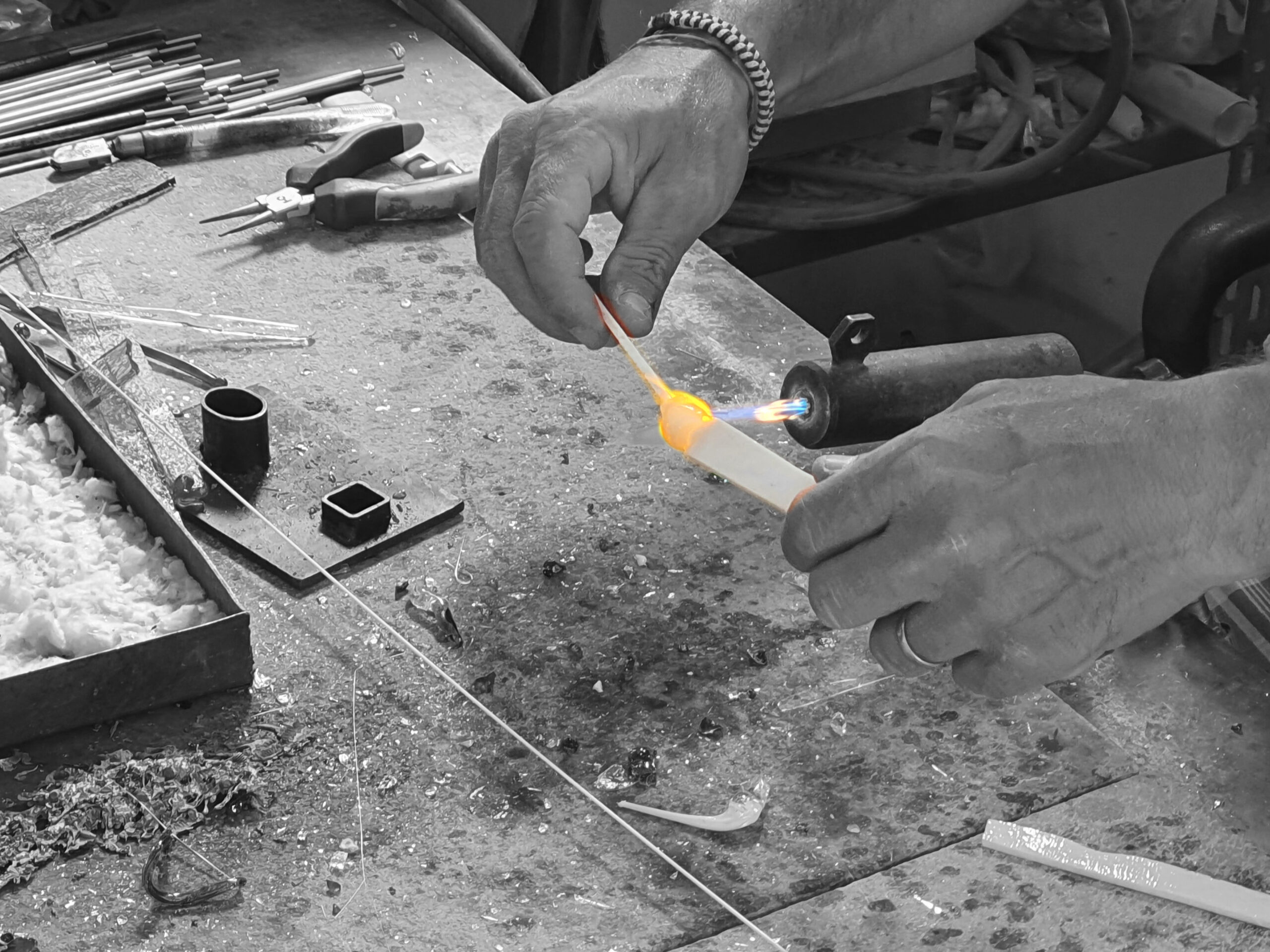 The raw materials used by Mag47 are selected with great care. Murano glass is a typical product of the lagoon with centuries of history and tradition, making it famous worldwide. The production of this artistic glass requires several stages and is extremely complicated. This is why the glass used in Mag47 plates is meticulously and carefully worked by expert glassmakers from the Island of Murano.