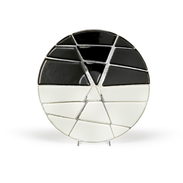Vassoio in vetro di Murano tondo Bianco e Nero. La linea tonda rimanda allo Ying-Yang, in una continua riflessione fra due forze in lotta perenne.